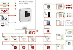 Die neu auf den Markt gebrachte Brandwarnanlage hifire ® 4100 stellt eine effziente und wirtschaftliche Lösung für diese Anforderungen dar. Sie besticht durch ein durchdachtes Konzept für Brandwarnanlagen, welches speziell auf diese Anforderungen abgestimmt ist. Dank der Hybridlösung können Komponenten via Draht oder Funk (auch im Mischbetrieb) mit der Brandwarnanlage verbunden werden. Die hifire ® 4100 überzeugt durch die schnelle Inbetriebnahme und bietet ein umfassendes Peripherieprogramm für alle Anwendungsfälle.